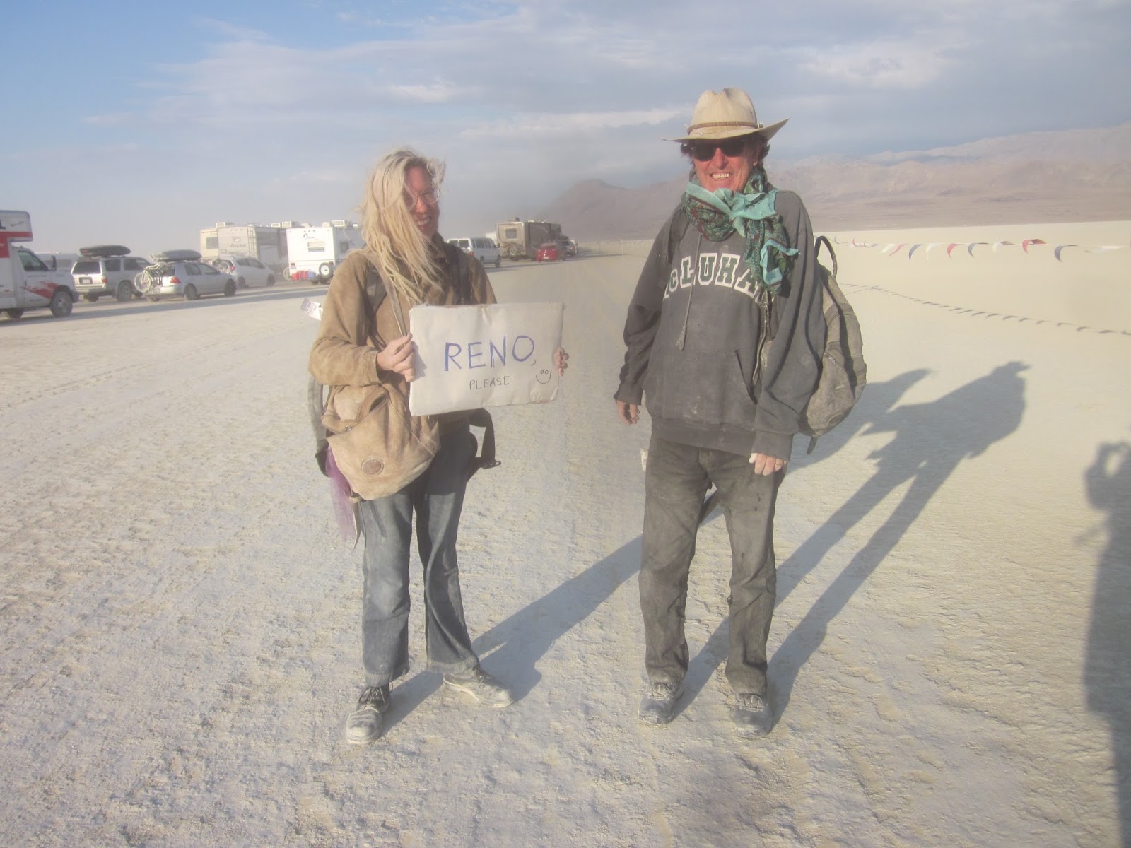 My daughter Ria and I spent an unforgettable week in the Black Rock Desert in Nevada in August at the arts-culture-alternative lifestyle-mud-orgy called Burning Man and we hitchhiked out, heading to Reno, where we would; A) get a shower and B) catch the first of three flights home.