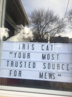 5) Is there a chance this nonsense — going to all that trouble, re-writing the sign, coming up with messages, having long and sometimes heated discussions with other members of the household who help compose the messages and fretting over getting photos without too much reflection in them EVERY DAY — happens merely because you want to make a terrific pun about Iris possibly being deaf and hence using Sign Language?