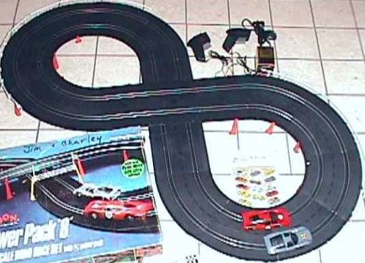 But back to the slot cars. As high-tech and advanced as it was, the toy had limitations; so early on Eddie figured out that if you removed the little white guard rails from the edge of the track, the risk of the cars flying over the side got way better, so off came the guard rails and wheeeee! off flew the little racing cars.