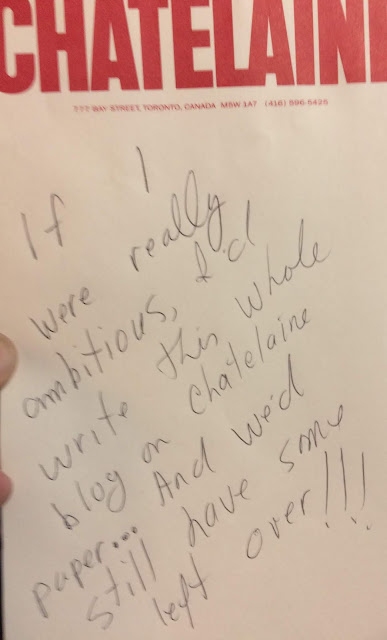 These notepads have earned their keep. (I really should ask our neighbours if they still have any similarly storied Chatelaine notepads. We could produce a reality tv show.)