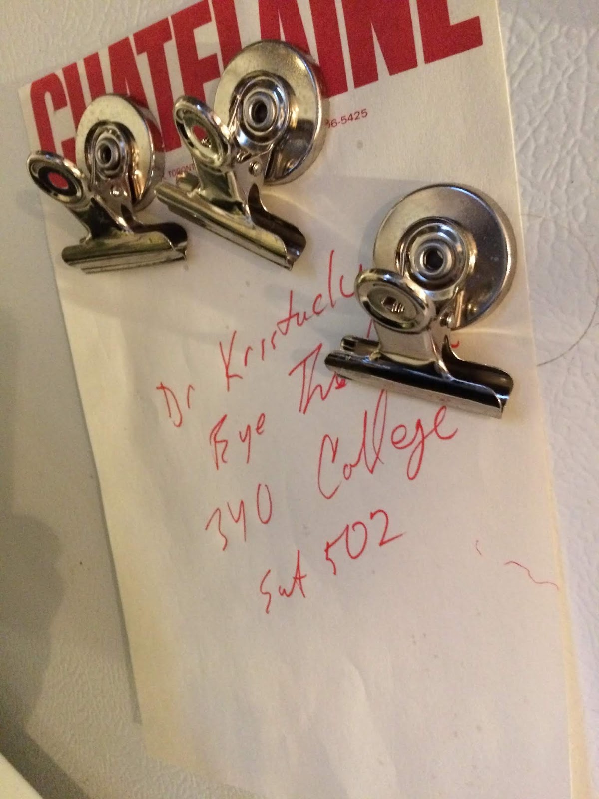 Notes magnetically adhered to the fridge door. Innumerable messages of encouragement tucked into