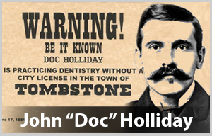 Then I mentioned Doc Holliday, the famous deadly gunfighter who was supposedly in scores of gunfights in the old west, and who was also a dentist and whose picture hangs in Baltimore.