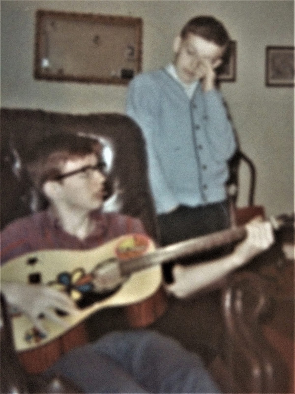 living room; and Ed Sr. asked Ed. Jr. to play a little tune on the guitar. Brother