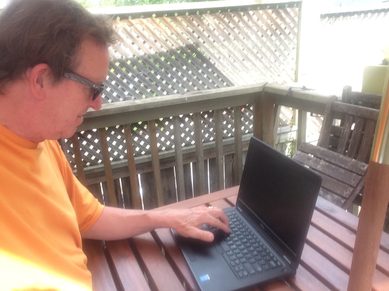 About 30 minutes ago, I was telling my wife Helena that a certain home-repair contractor had made an appointment for a visit to our place (for a non-stair-related matter); and while I was sharing the information, I was on the move.