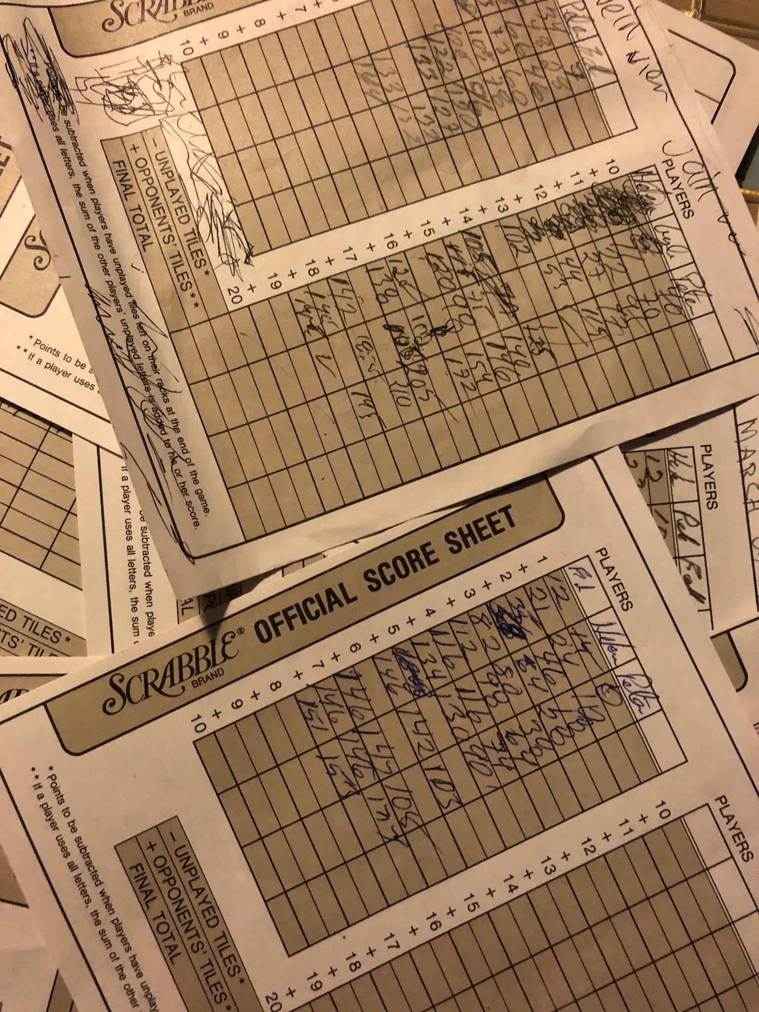 | MORE THAN A SCORE AND A HALF: Is how many years we three have been Scrabbling |